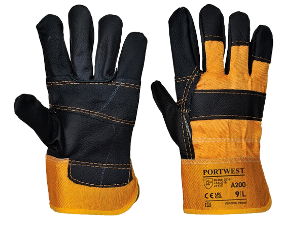 Gant docker traditionnel avec manchette de sécurité caoutchoutée, protège artère et paume en cuir. Offre une résistance exceptionnelle à l’abrasion pour les travailleurs des secteurs agricoles, forestiers, de la construction
