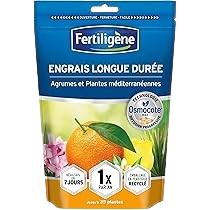 – de granules d’engrais enrobées à libération progressive pour une action longue durée.